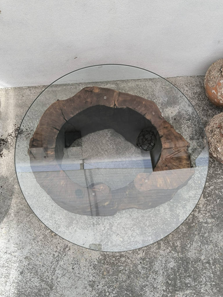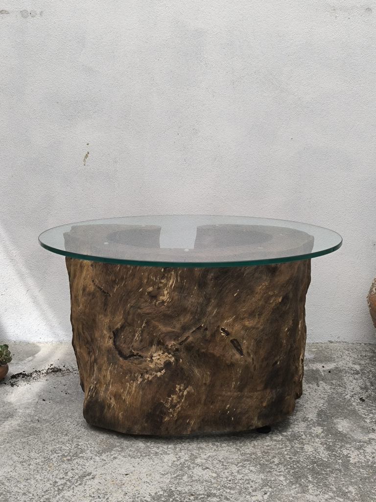 A Oco nasce de um bloco maciço de madeira, preservado no seu estado natural e trabalhado de forma a revelar a beleza das suas curvas e cavidades internas. O centro oco é coberto por um tampo circular de vidro, criando um contraste harmonioso entre a rusticidade da madeira e a leveza do vidro. Cada peça é única — as formas, texturas e tons variam conforme a história da madeira. Ideal para salas de estar que valorizam autenticidade, natureza e design minimalista com presença.